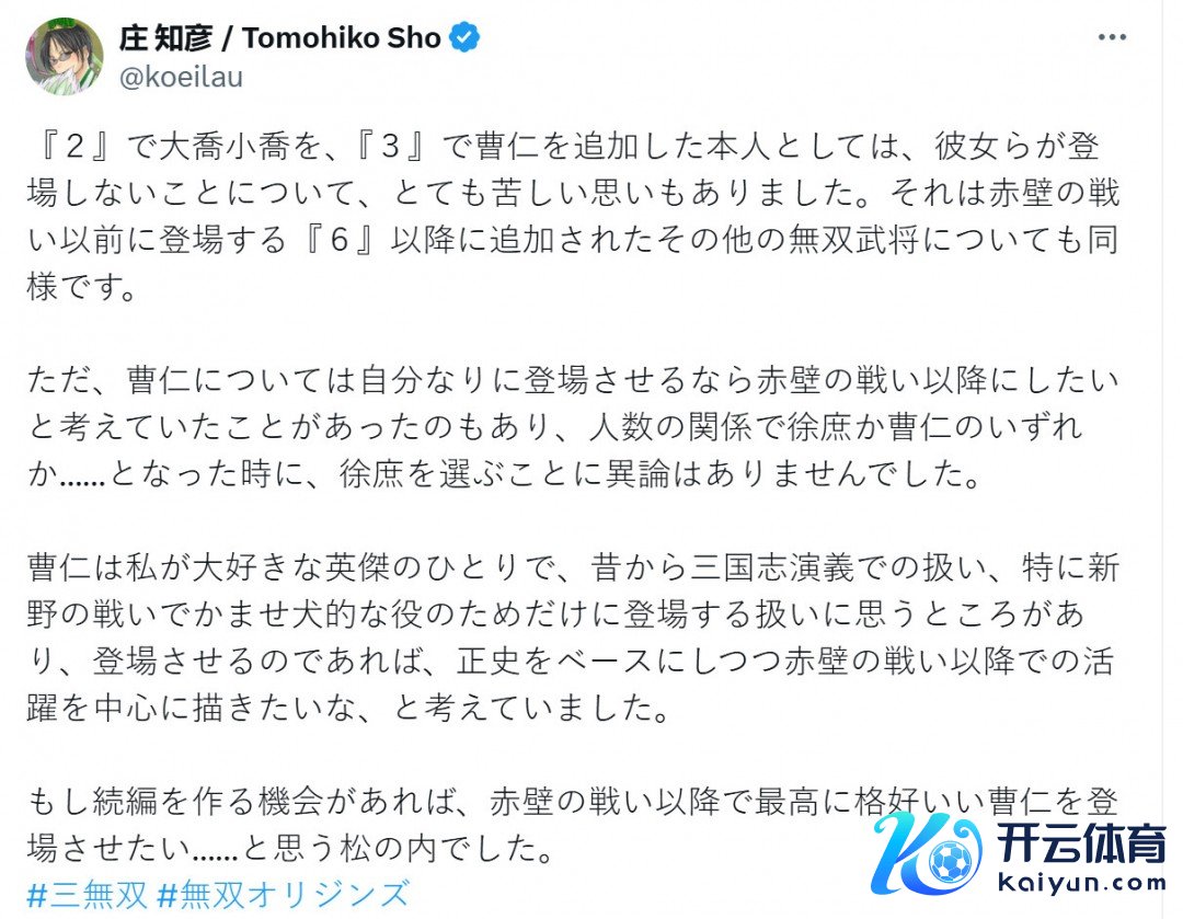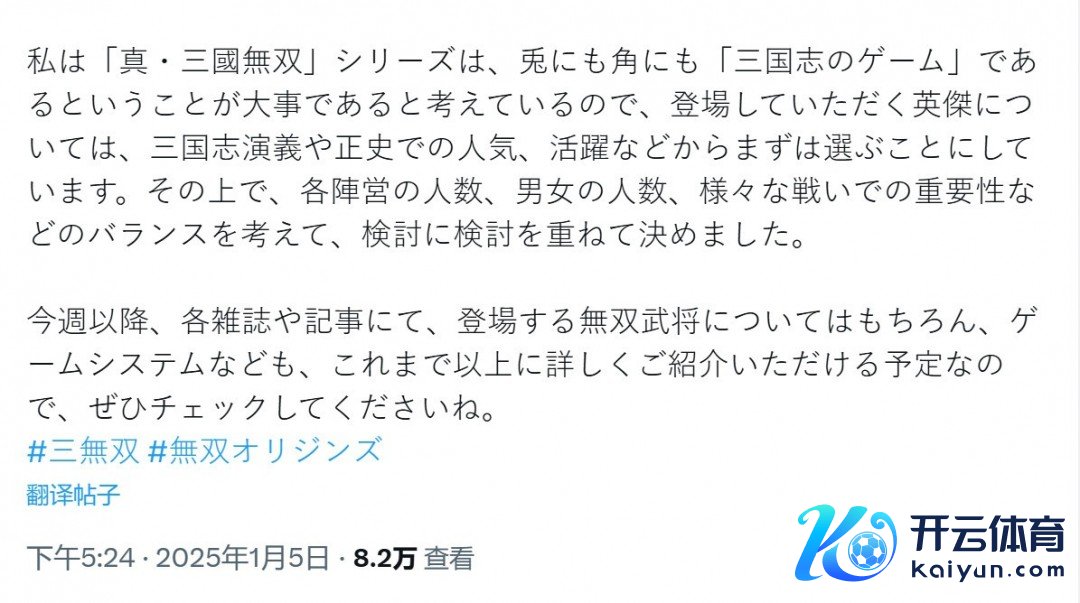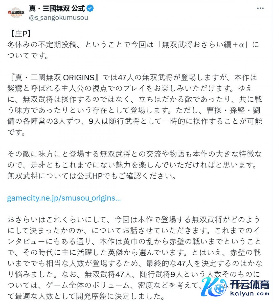 《真三国无双》官推近日发布推文,在内部《真三国无双:发祥》制作主谈主庄知彦阐明了为何该作独一47名武将。