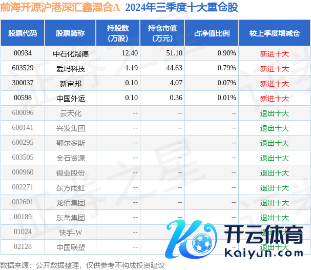 前海开源沪港深汇鑫搀杂A为搀杂型-无邪基金,笔据最新一期基金季报走漏,该基金钞票成就:股票占净值比1.77%,债券占净值比5.61%,现款占净值比64.72%。基金十大重仓股如下: