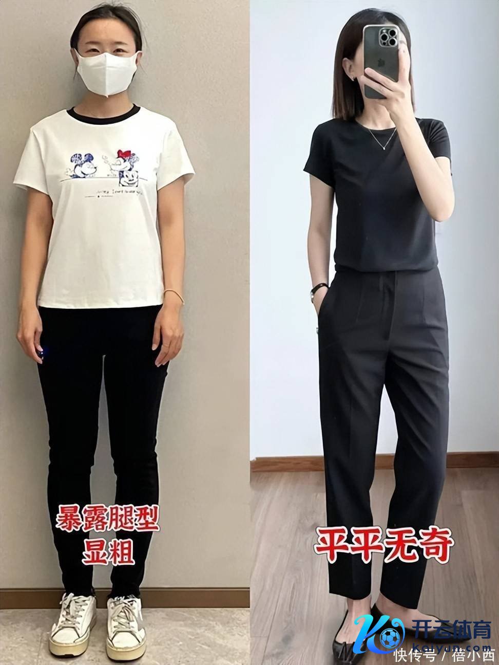 再看小黑裤,相似藏着诸多雷区,紧身小黑裤对腿型条件极高,肌肉腿、O型腿穿上后,腿部线条的弱势会一望无边,还会勒出胯部赘肉,显得下半身痛苦,算计打算也过于单调刻板,阑珊算计打算感,与T恤重叠后,全体造型毫无档次感,给东谈主一种“叮嘱套身穿戴外出”的依稀感。