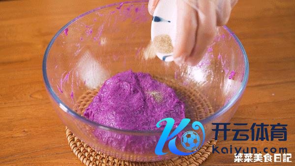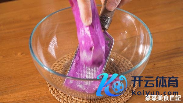 1. 脚板薯去皮,150g 擦成泥,加入 15g 红薯粉顺时针搅打上劲
