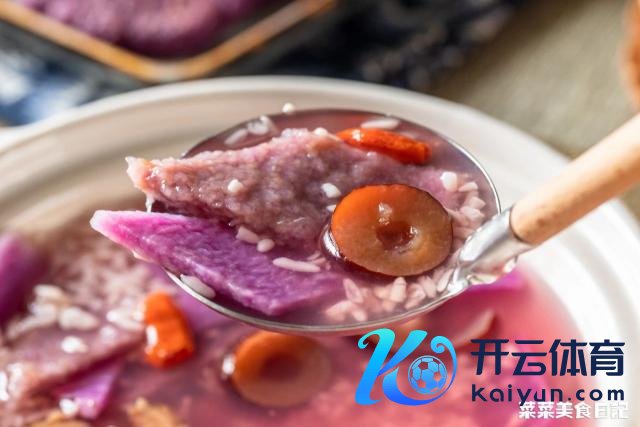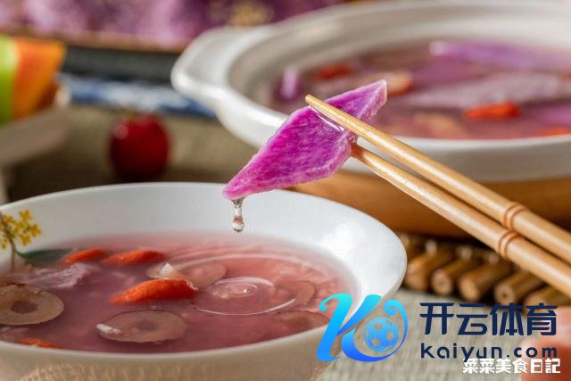 尔后把煎好的薯泥当成小料,与酒酿、当归、红枣、枸杞、红糖同煮,一锅漂亮水即成