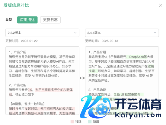 昨年11月到本年1月,腾讯元宝每个月齐有4次版块更新,版块间隔离并不大。而2月13日接入DeepSeek版块上线后,短短10天里,腾讯元宝就更新了3次,先是加入腾讯混元自研推理模子T1手脚DeepSeek的补充并优化,后又复古上传及拍照识图。