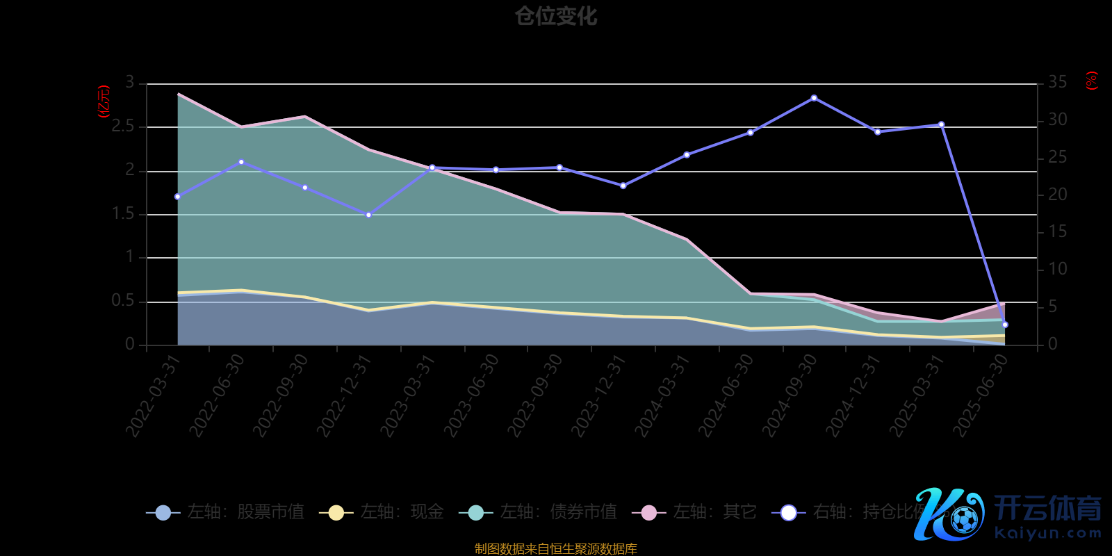 据依期领悟数据统计,近三年平均股票仓位为23.2%,同类平均为18.92%。2024年三季度末基金达到33.05%的最高仓位,2025年上半年末最低,为2.72%。