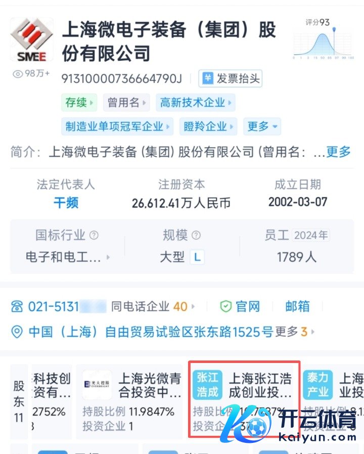 天眼查信息袒露,张江高科通过全资子公司上海张江浩成创业投资有限公司持有上海微电子10.78%的股权,启动投资额约2.23亿元。